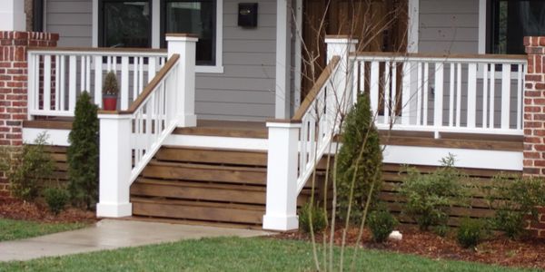 OPEN PORCH USING ALL WOOD PRODUCTS AND PAINTED AND STAINED.